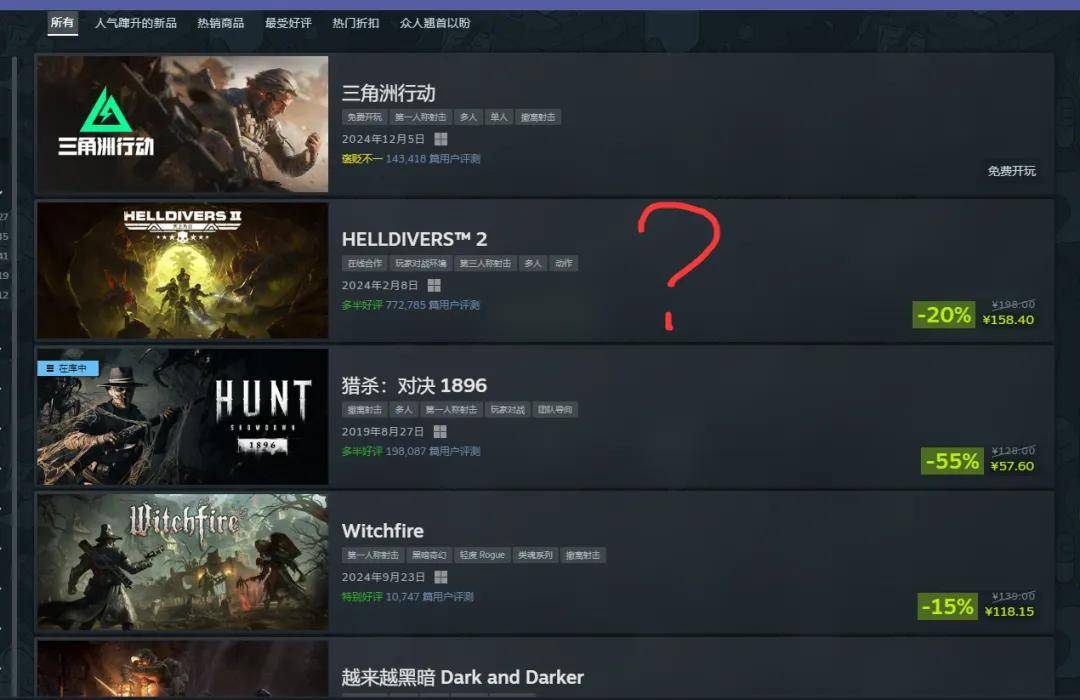 “搜打撤”这个说法,是国内玩家简明扼要的一个概括,但在英文语境下,其实只有“撤离射击”这个分类标签,导致很长一段时间内,《绝地潜兵2》是这个分类下的头牌,Helldivers“做出人生中最重要的决定”,身陷重围在地图迷雾里探索,猛扣扳机,最后飞升撤离,似乎确实就是字面意思上的“搜打撤”,但玩过的朋友都明白,这和我们说的那种游戏根本不是一回事。