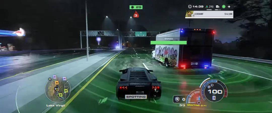 能见到的例子,往往是在已经运营的游戏上扩展得到的活动玩法模式,比如我们上个月提到过《极品飞车:不羁》中的“封锁模式”,赛车竞速加上搜打撤,就是一个非常合适的创意,玩家在战局中搜寻中立极品车,互相撞击,追逐,截停,逃离NPC警车的追捕,脱出升天将他人的爱车收入囊中。收藏跑车和地下赛车的题材动机都和“搜打撤”元素一一对应,既不出戏,也不会和FPS玩法撞车。