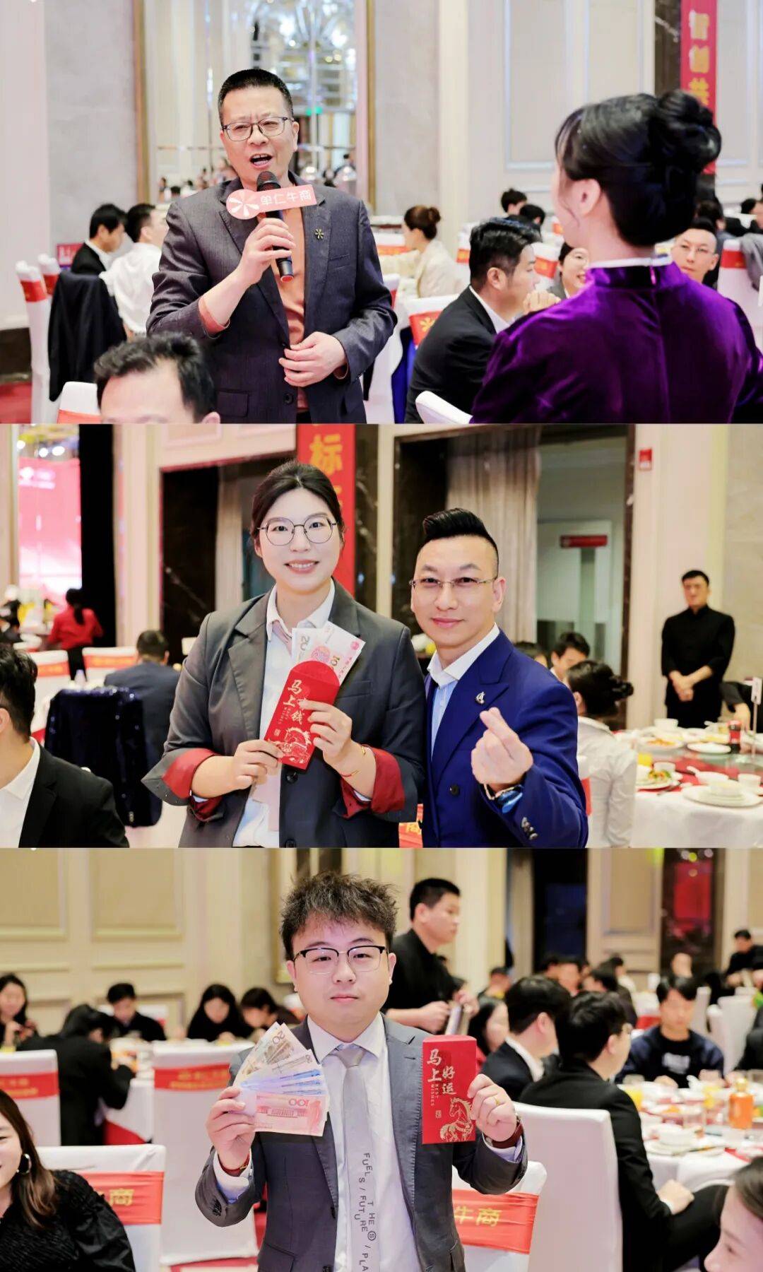 晚宴进入高潮环节。趣味游戏《说祝福猜红包》欢乐上线,主持人邀请现场伙伴参与,猜红包数字前需送上新年祝福,主持人根据嘉宾答案不断缩小区间,多轮互动让现场笑声不断。