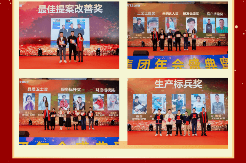 有一种荣耀,是拼搏后的加冕;有一种激励,是榜样的引领。本次年会表彰环节成为彰显宝益科技集团人才实力与发展底色的重要篇章,活动现场重磅颁发生产标兵奖、品质卫士奖、服务标杆奖、财控楷模奖、采购达人奖、工艺工匠奖、研发先锋奖、客户桥梁奖、卓越贡献奖、最佳提案改善奖、卓越领导奖等十余个奖项,覆盖生产、品质、研发、管理、服务等全业务链条。一张张荣誉证书、一座座奖杯,既是对优秀员工与团队过往付出的高度肯定,更是集团重视人才、赋能成长的生动体现。获奖代表们纷纷表示,将以这份荣誉为激励,在岗位上再练真功、再建新功,与企业同成长、共发展。此次表彰不仅树立了全员学习的标杆,更凝聚起“人人争先进、事事求卓越”的奋进力量,彰显了宝益科技精细化管理、全链条提质的硬实力。