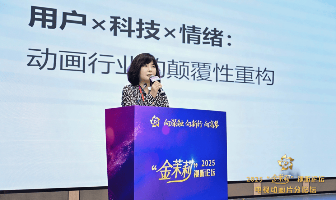 爱奇艺副总裁、中国动画学会副会长杨晓轩围绕《用户×科技×情绪:动画行业的颠覆性重构》指出,短视频冲击下用户注意力持续时间缩短,AI 赋能可大幅提升动画创作效率。她同时强调,动画行业需以 “情绪经济” 为核心驱动力,通过布局线下周边店、打造AI 影视体验馆、推动粉丝共创陪伴,将动画 IP 升维为情感资产。
