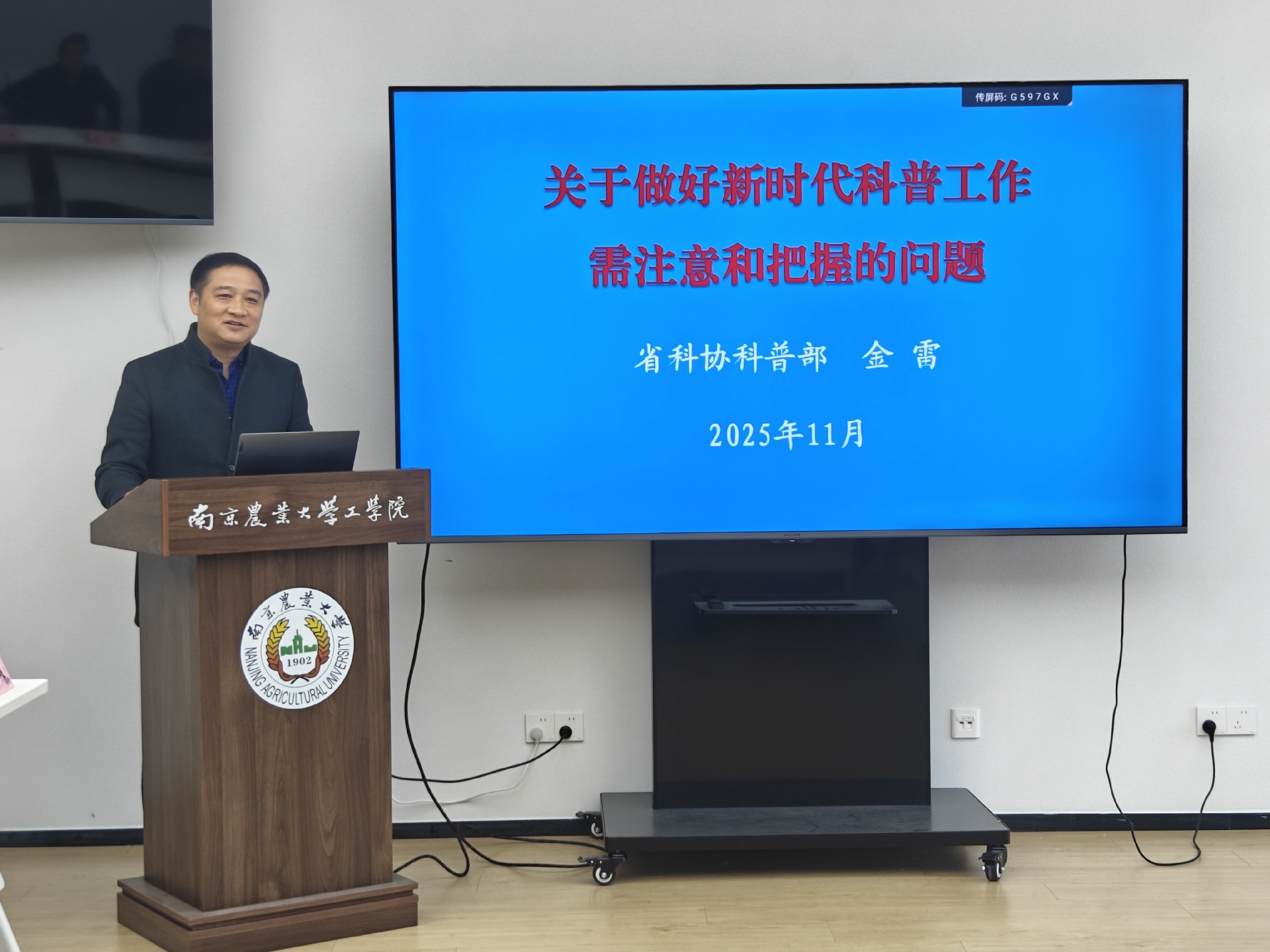 南京农业大学工学院副院长邱威教授率先致欢迎辞,在介绍学院涉农相关科普工作实践的过程中,着重阐述了力学学科于农业工程领域的关键作用及应用价值。