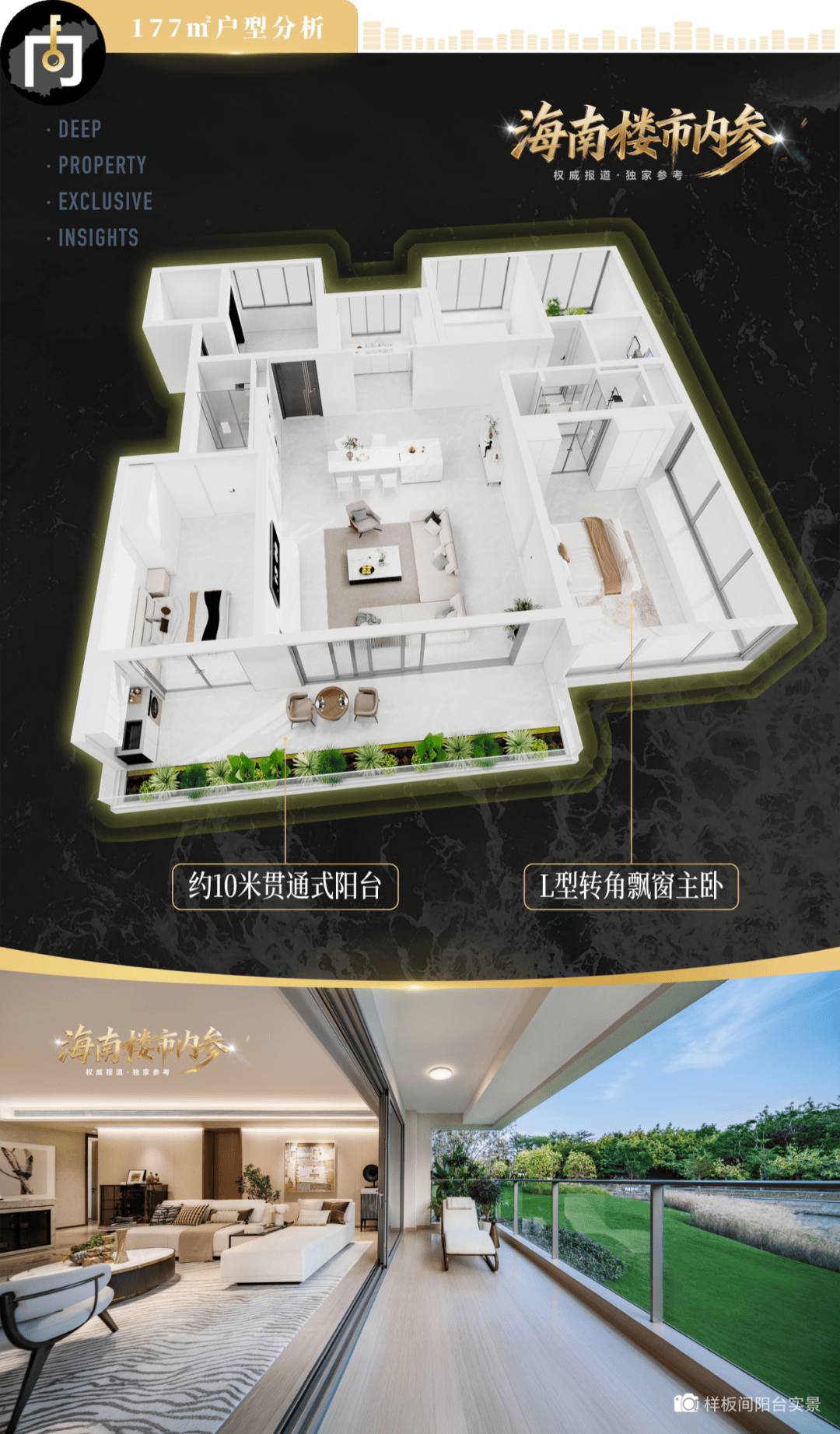 产品上,为了实现与户外最大限度的互动,天正·三亚湾壹号借助板房排布的优势,将所有户型都采用了多个空间并排朝南的设计。如211㎡户型,实现了四个空间的朝南设计;最小的126㎡户型,也有三个空间朝南。南向除了采用贯通式阳台进行空间串联,还在东、北两个朝向布置阳台,整个户型与户外的交互界面达到270°。