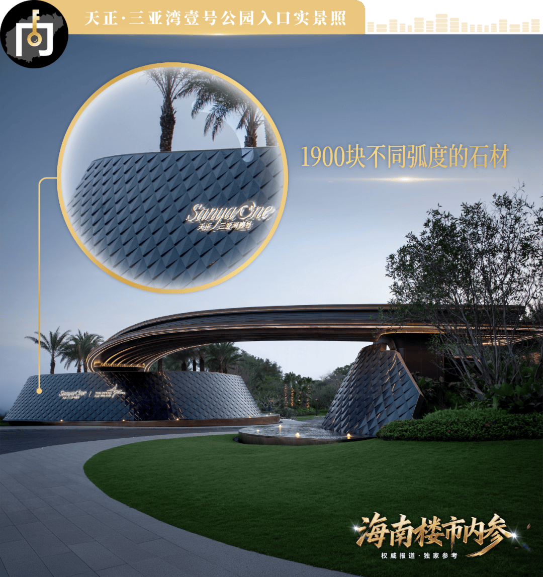 在这些标准化之上,项目还需要根据在地气候进行产品创新。如天正·三亚湾壹号项目,为了充分运用三亚气候特点,在项目的公园入口采用了开放式的天幕云桥设计,设置了三面艺术景墙搭配跌瀑水晶。因为三面景墙采用了弧形双曲面设计,每个曲面的弯曲弧度并不一致,很难做到完美贴合。为了实现这个效果,设计团队利用3D建模雕刻出了1900块拥有不同弧度的石材,才让这一设计呈现。