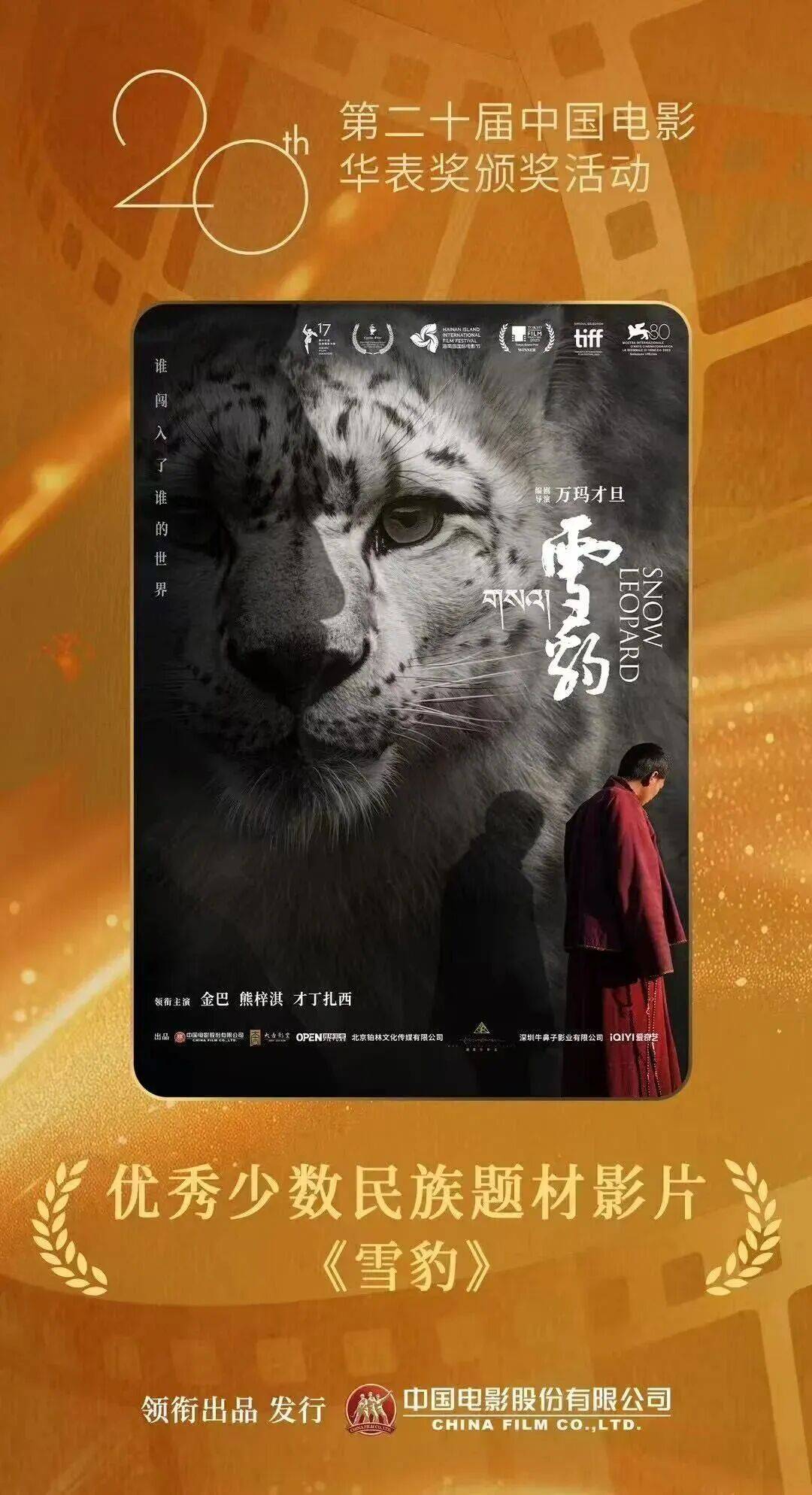 4月27日,第二十届中国电影华表奖揭晓,中国美术学院电影学院教授、博士生导师万玛才旦导演的遗作《雪豹》获优秀少数民族题材影片奖。
