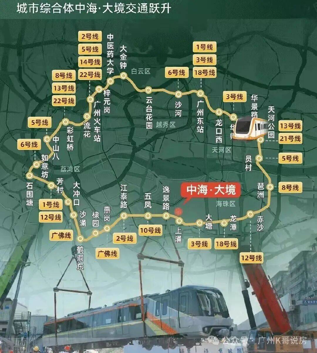 地铁11号线号线是广州首条市区大环线,串联广州中心五区,与广州现有及未来的所有地铁实现换乘,被称为“换乘之王”虹吸全广州的优质资源。