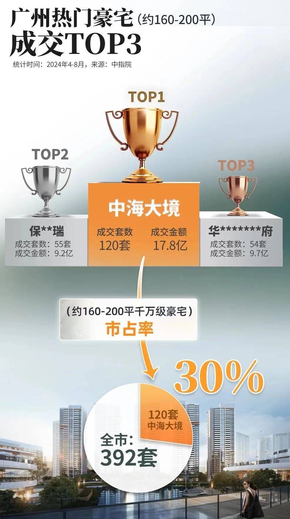 2024年4月以来,项目主打约160-200平户型,狂成交金额、销量和面积均是NO.1,斩获广州豪宅“三冠王”。