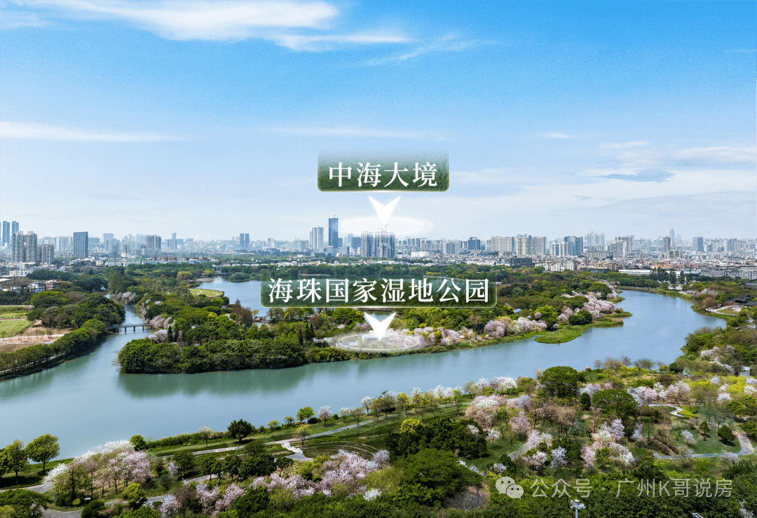 挨着面积高达1100公顷的海珠国家湿地公园,是广州中轴上的超级绿肺,南面隔新滘西路就是海珠湿地上涌生态科学院,周边环境优美,绿意盎然,生态方面确实没有什么挑的。